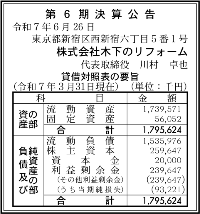 株式会社木下のリフォーム閉鎖済み 東京都新宿区 【2020年3月期】 |