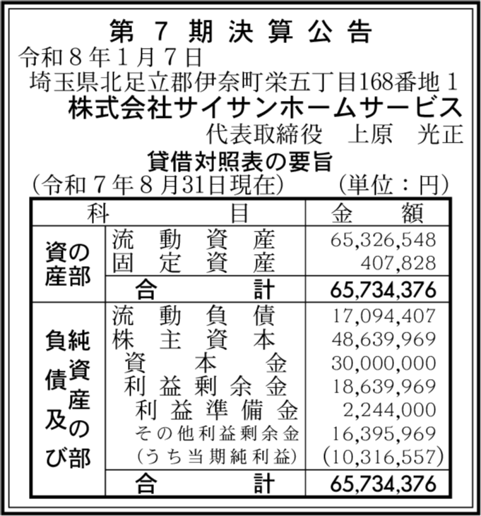| 会社名 | 株式会社サイサンホームサービス |