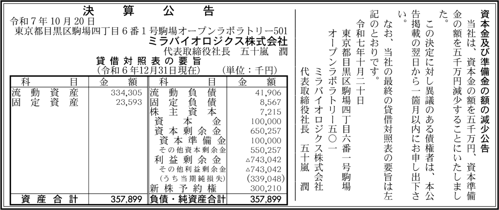 タグシクス・バイオ株式会社 東京都目黒区 【2024年12月期】 |