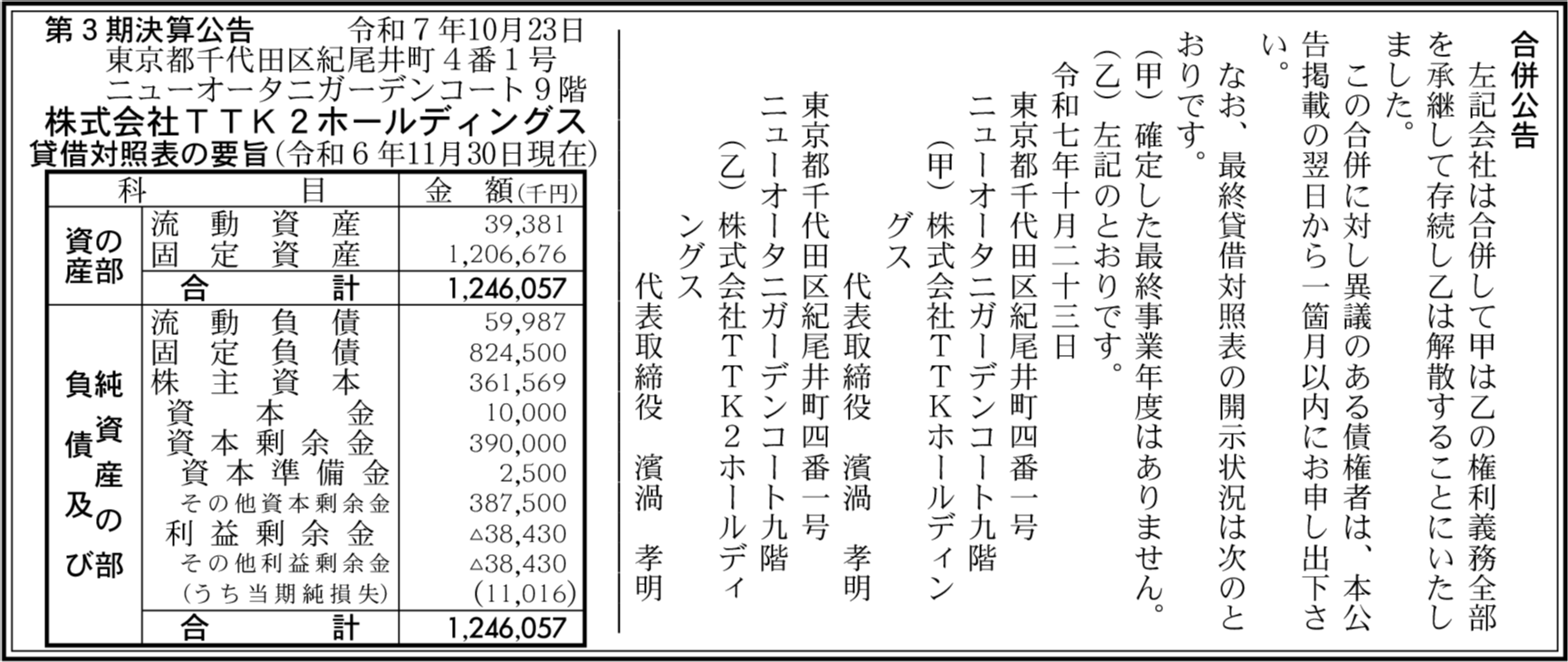 | 会社名 | 株式会社TTK2ホールディングス |