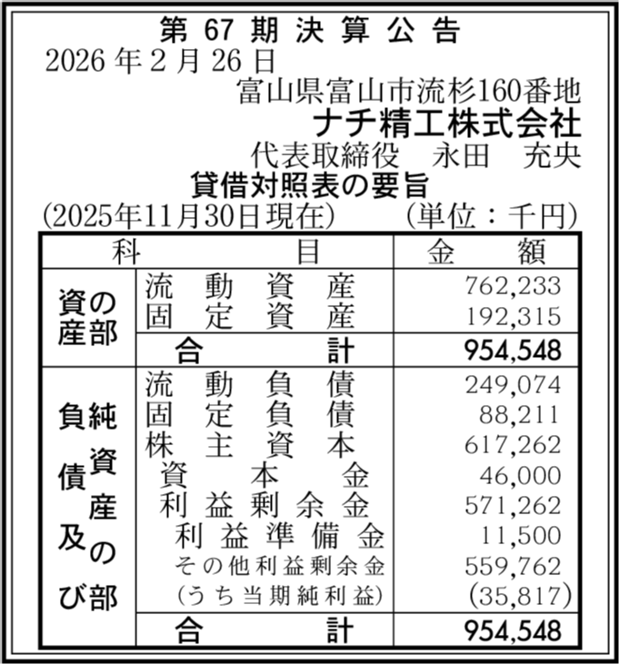 株式会社ナチツールエンジニアリング 富山県富山市 【2025年11月期】 |