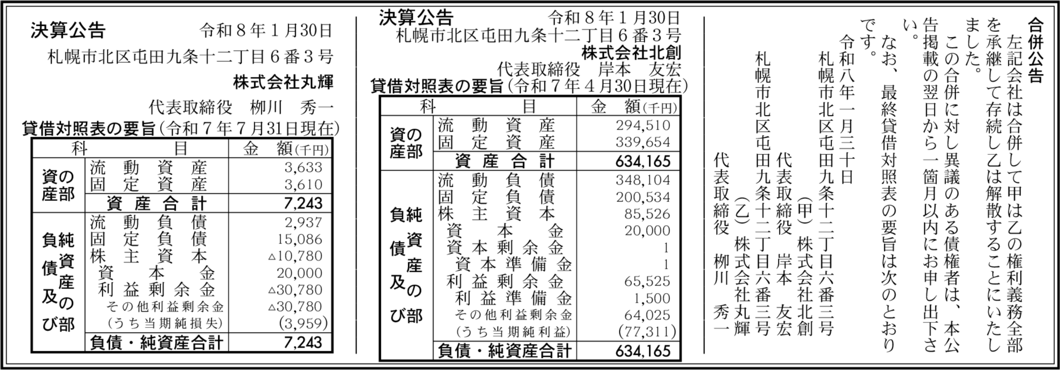 株式会社丸輝 札幌市北区 【2025年7月期】 |