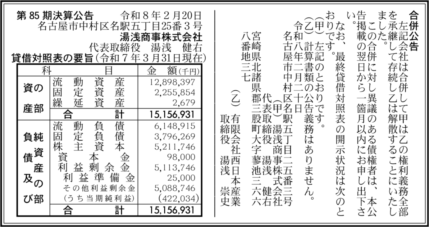 | 会社名 | 湯浅商事株式会社 |