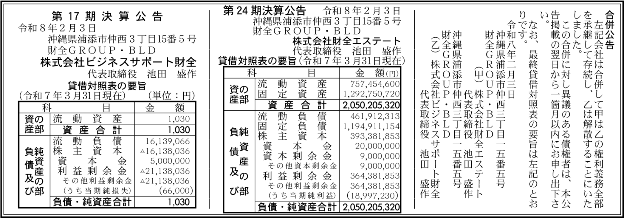 株式会社ビジネスサポート財全 沖縄県浦添市 【2025年3月期】 |