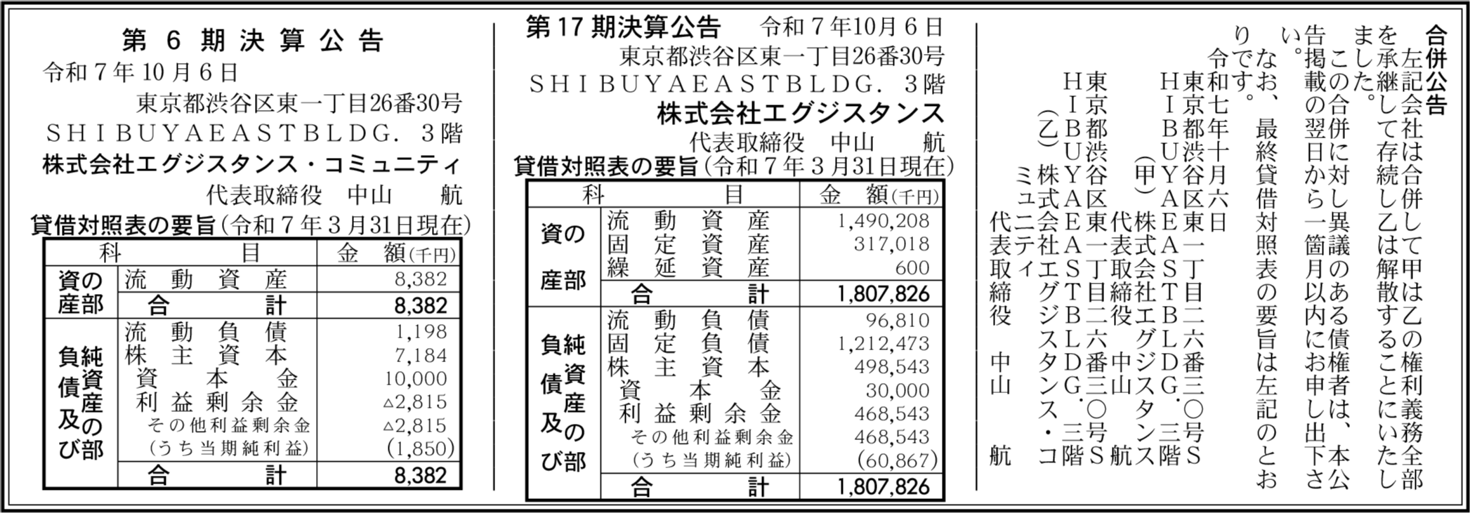 株式会社エグジスタンス・コミュニティ 東京都渋谷区 【2025年3月期】 |