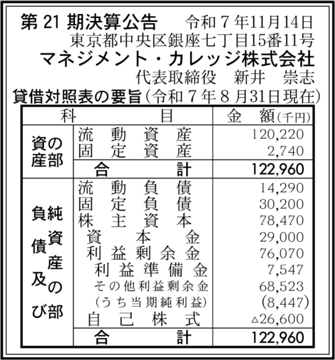 | 会社名 | マネジメント・カレッジ株式会社 |