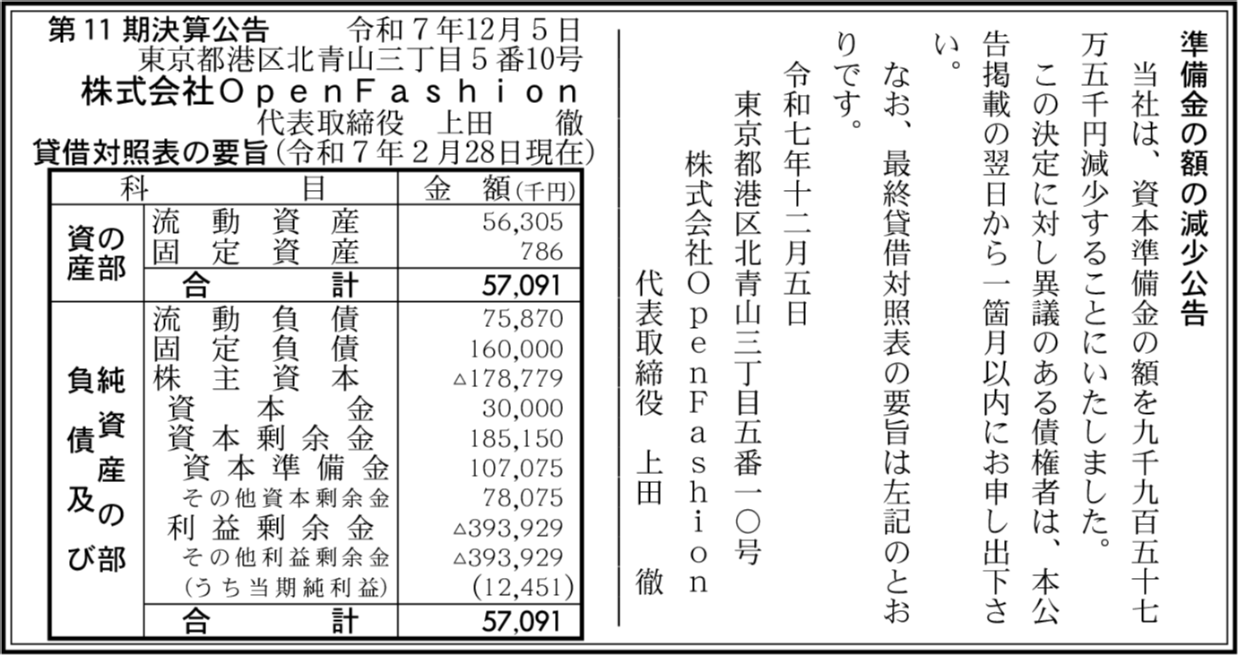| 会社名 | 株式会社OpenFashion |