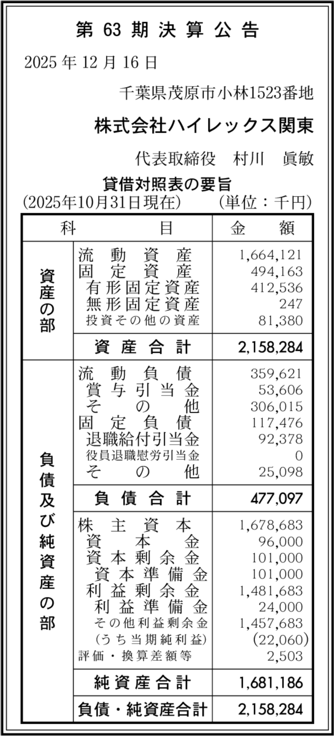 | 総資産 | 21億5,828万4,000円 (+0.13%) |