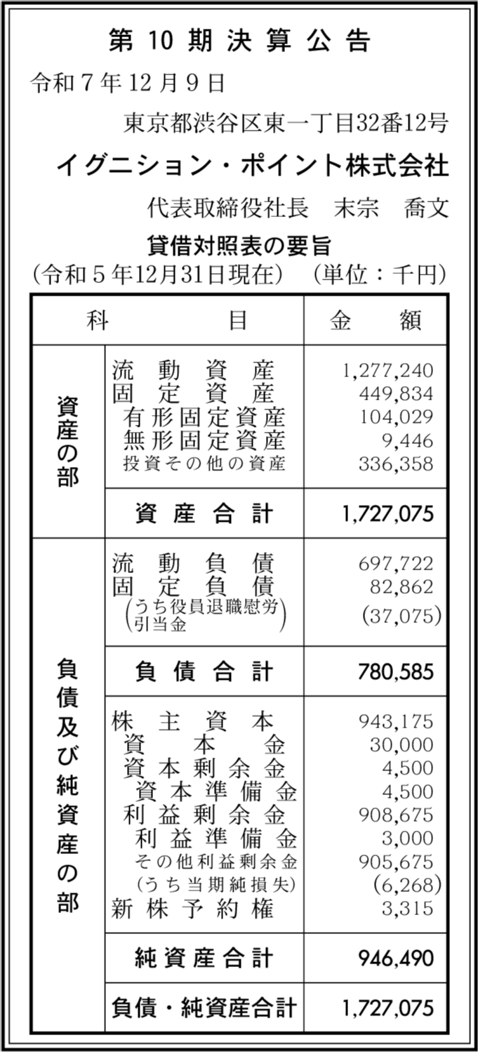イグニション・ポイントフォース株式会社 東京都渋谷区 【2024年12月期】 |