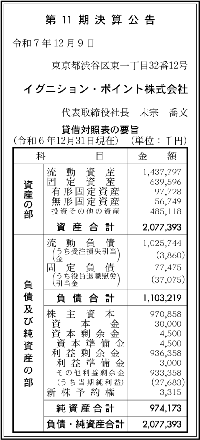 イグニション・ポイントフォース株式会社 東京都渋谷区 【2024年12月期】 |