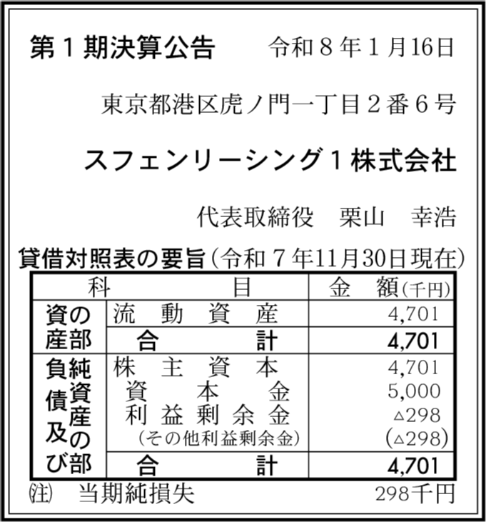 スフェンリーシング2株式会社 東京都港区 【2025年11月期】 |