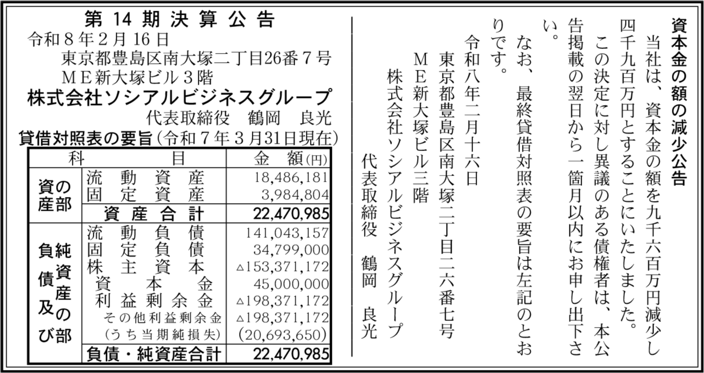 | 会社名 | 株式会社ソシアルビジネスグループ |