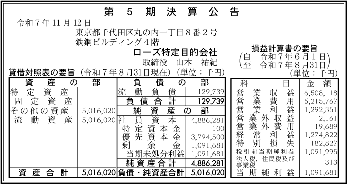 特定目的会社Star Dracaena 東京都千代田区 【2025年4月期】 |