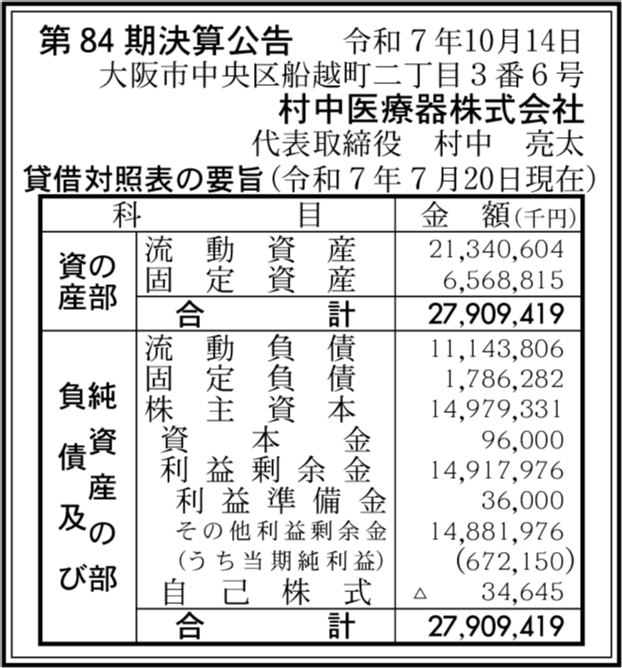 村中商事株式会社閉鎖済み 大阪市中央区 【2017年4月期】 |