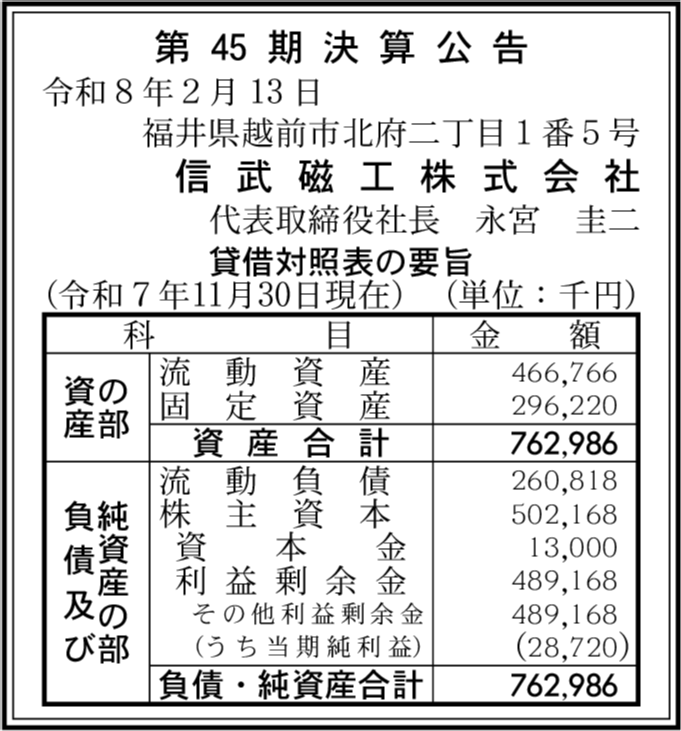 株式会社信越マグネット 福井県越前市 【2025年3月期】 |
