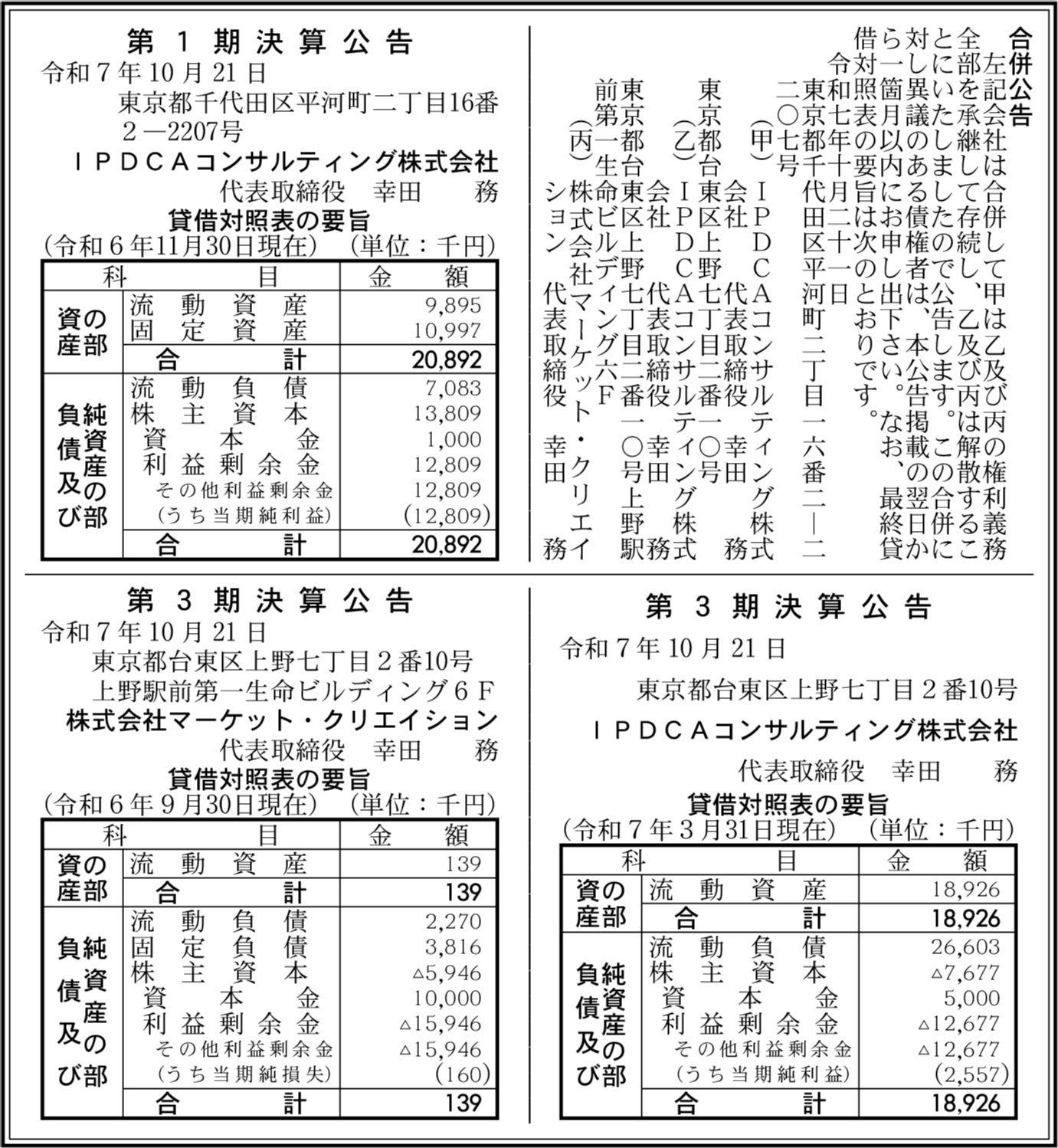 IPDCAコンサルティング株式会社 東京都台東区 【2025年3月期】 |