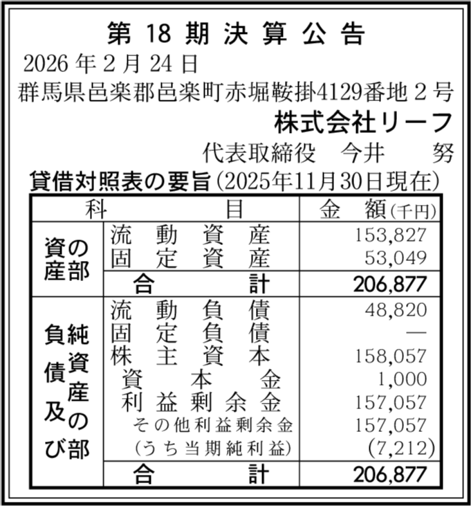 | 利益剰余金 | 1億5,705万7,000円 (+4.81%) |
