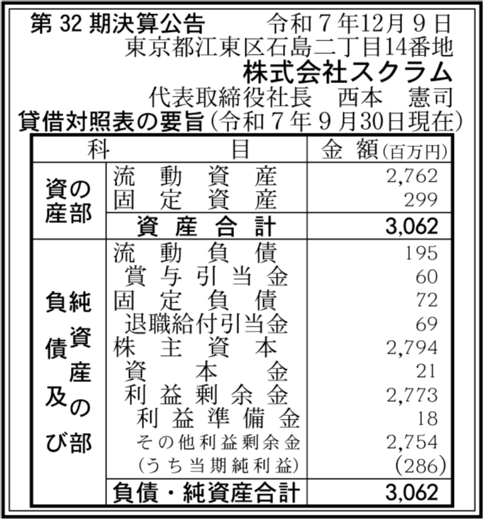 | 総資産 | 30億6,200万円 (▲17.29%) |