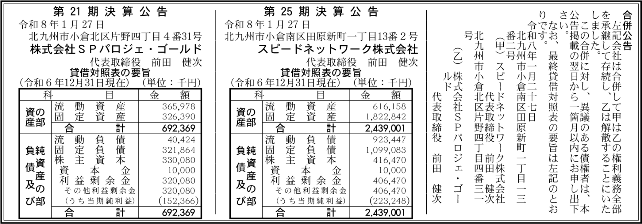 スピードネットワーク株式会社 北九州市小倉南区 【2024年12月期】 |