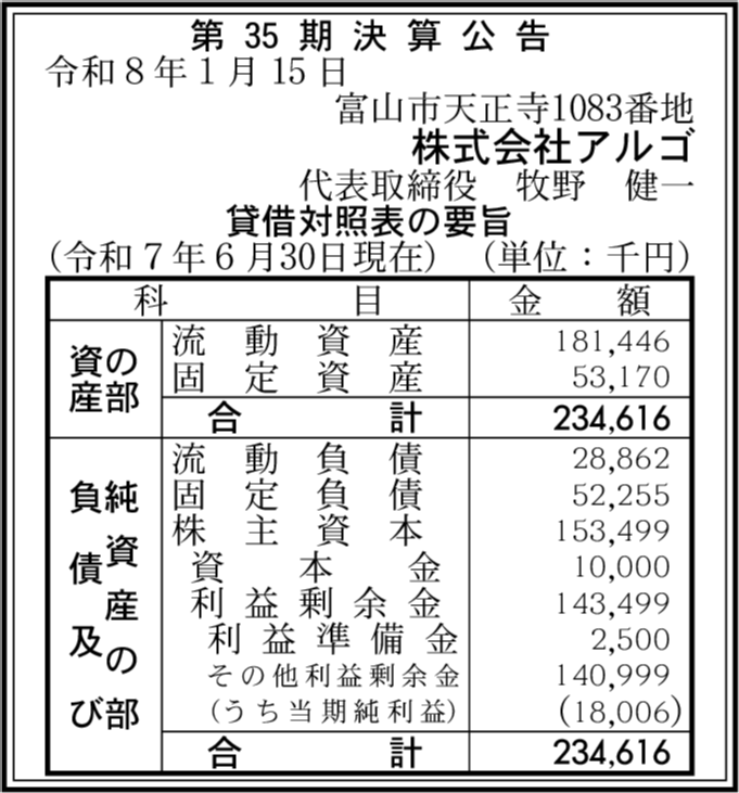 | 利益剰余金 | 1億4,349万9,000円 (+11.68%) |
