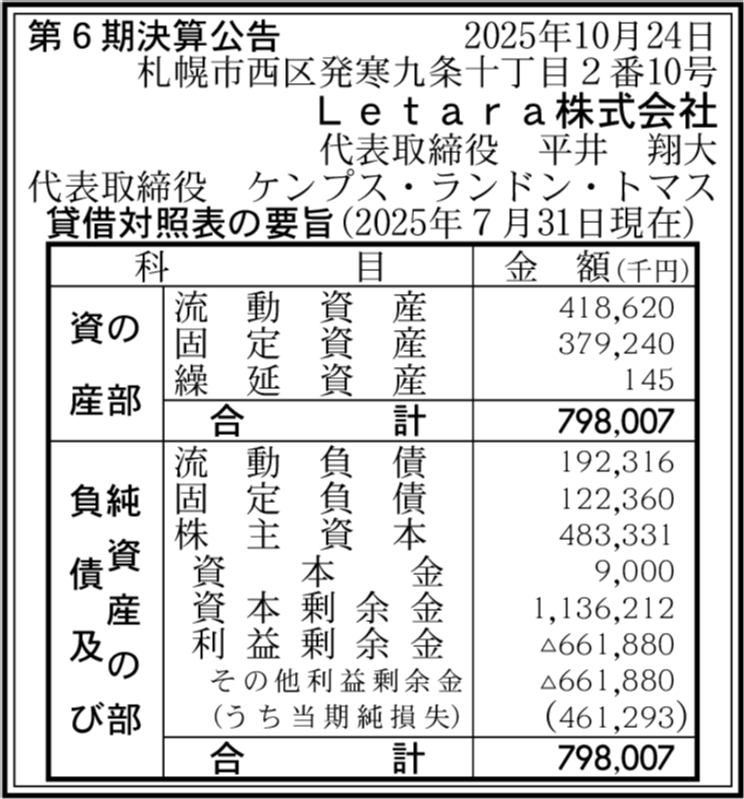 こだまリサーチ株式会社 札幌市西区 【2025年7月期】 |