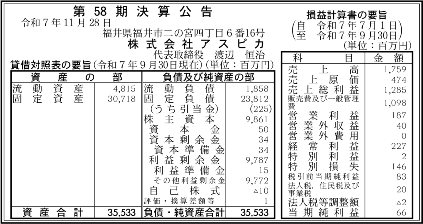 株式会社ラキスプリード 福井市 【2025年9月期】 |