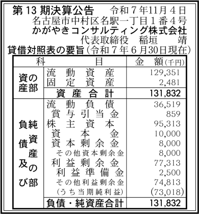 かがやきパートナーズ株式会社 東京都新宿区 【2025年6月期】 |