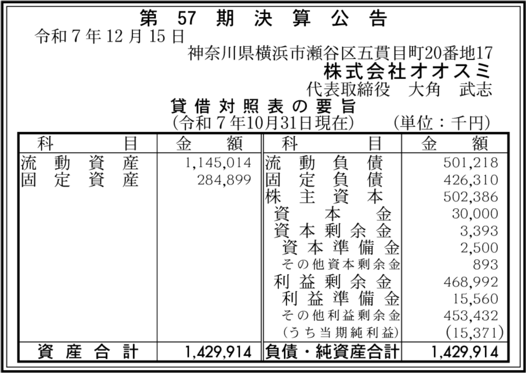株式会社オオスミホールディングス 神奈川県横浜市瀬谷区 【2025年10月期】 |