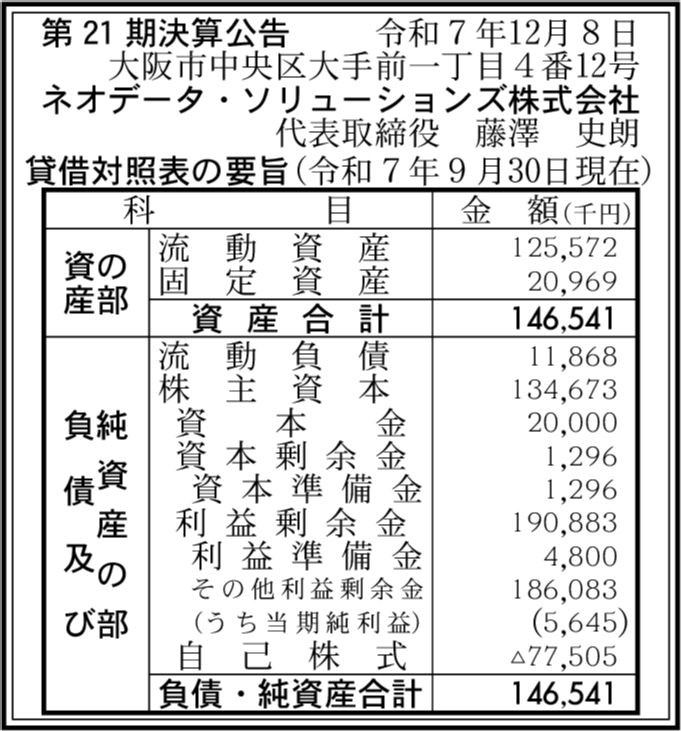 | 会社名 | ネオデータ・ソリューションズ株式会社 |