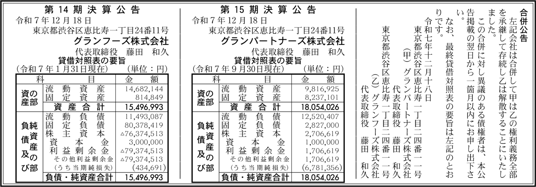 グランパートナーズ株式会社 東京都渋谷区 【2025年9月期】 |