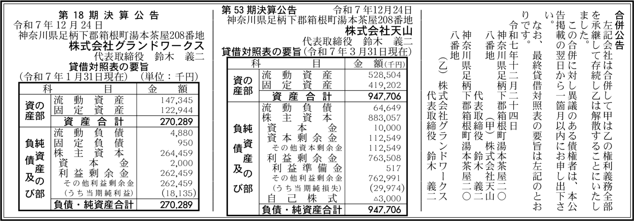 株式会社天山 神奈川県足柄下郡箱根町 【2025年3月期】 |