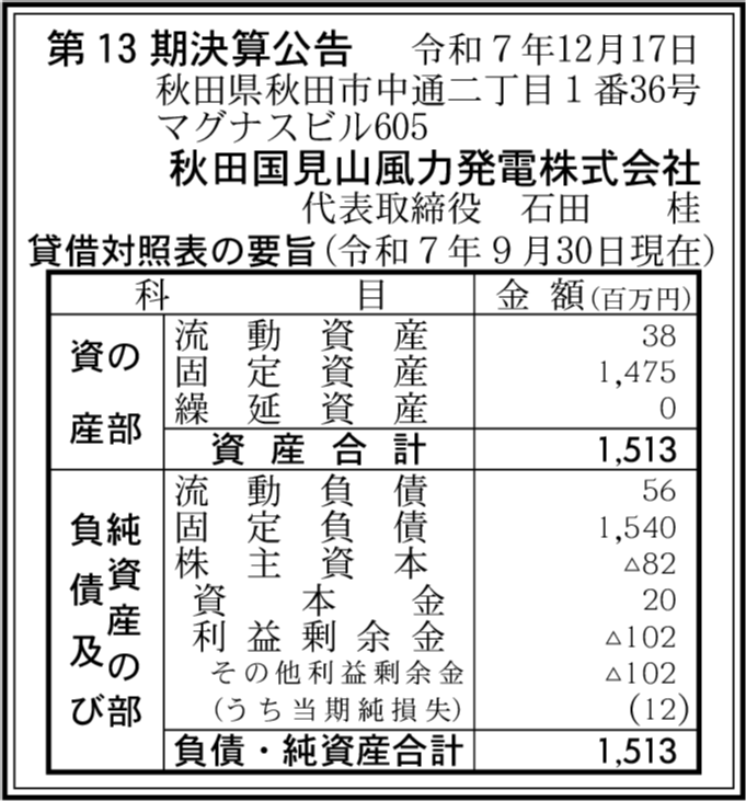 | 会社名 | 秋田国見山風力発電株式会社 |
