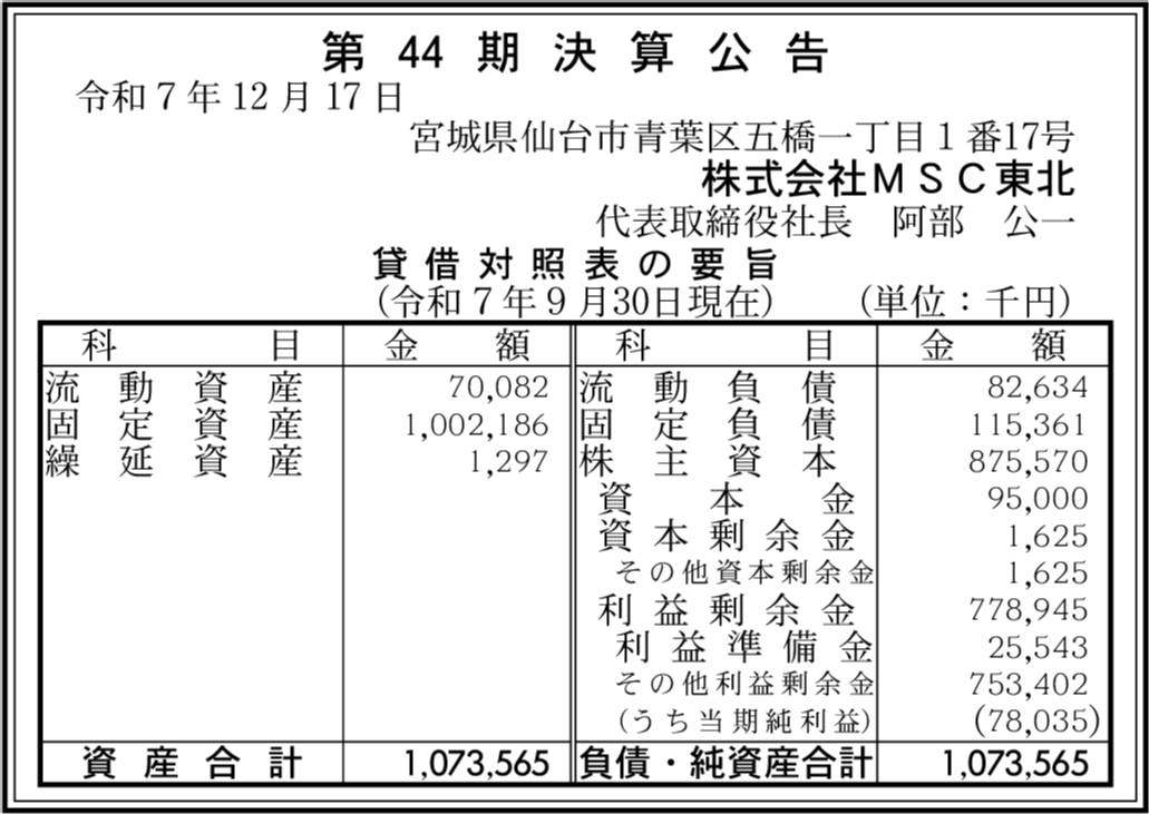 | 会社名 | 株式会社MSC東北 |