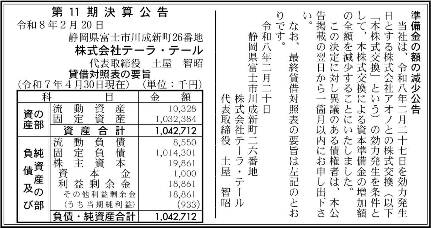 | 会社名 | 株式会社テーラ・テール |