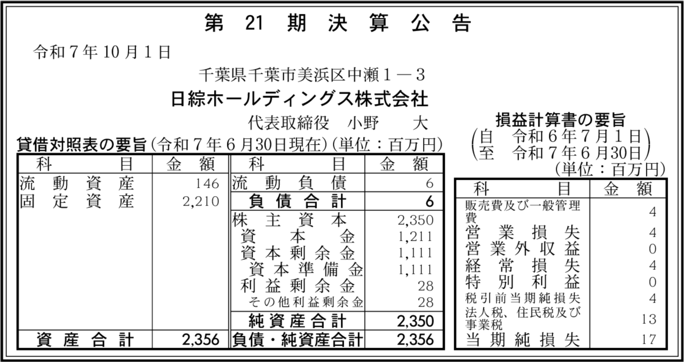日綜産業株式会社 千葉県千葉市美浜区 【2025年6月期】 |