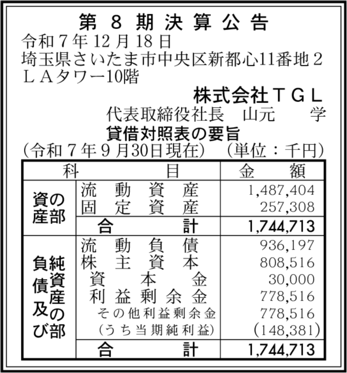 | 会社名 | 株式会社TGL |