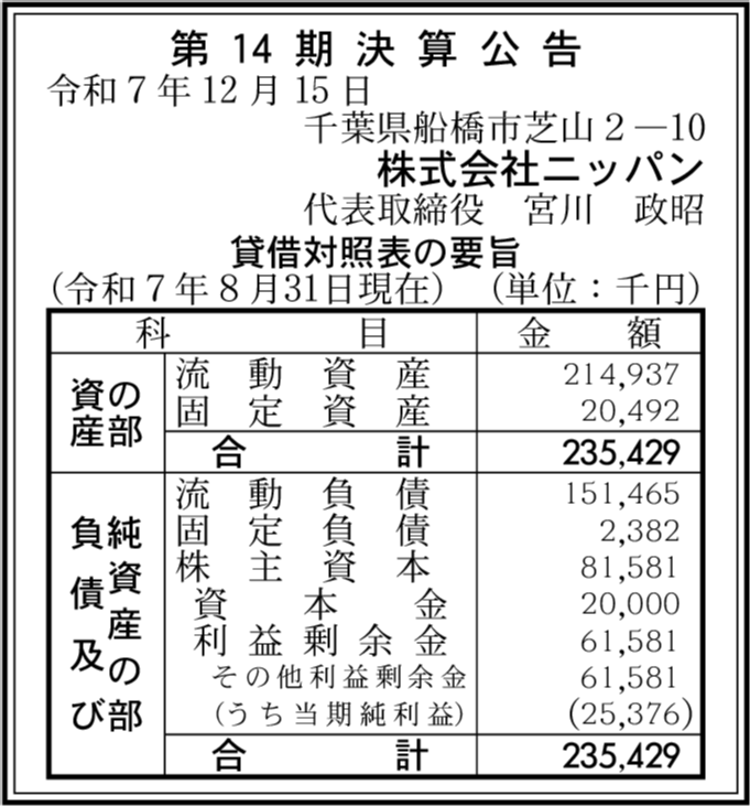 ネクストボックス株式会社 千葉県船橋市 【2025年8月期】 |