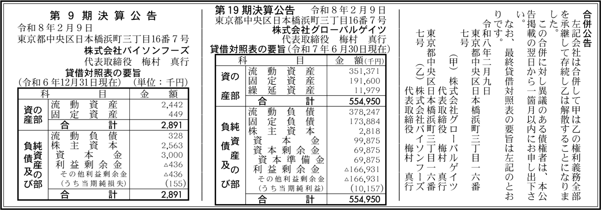 株式会社バイソンフーズ 東京都中央区 【2024年12月期】 |