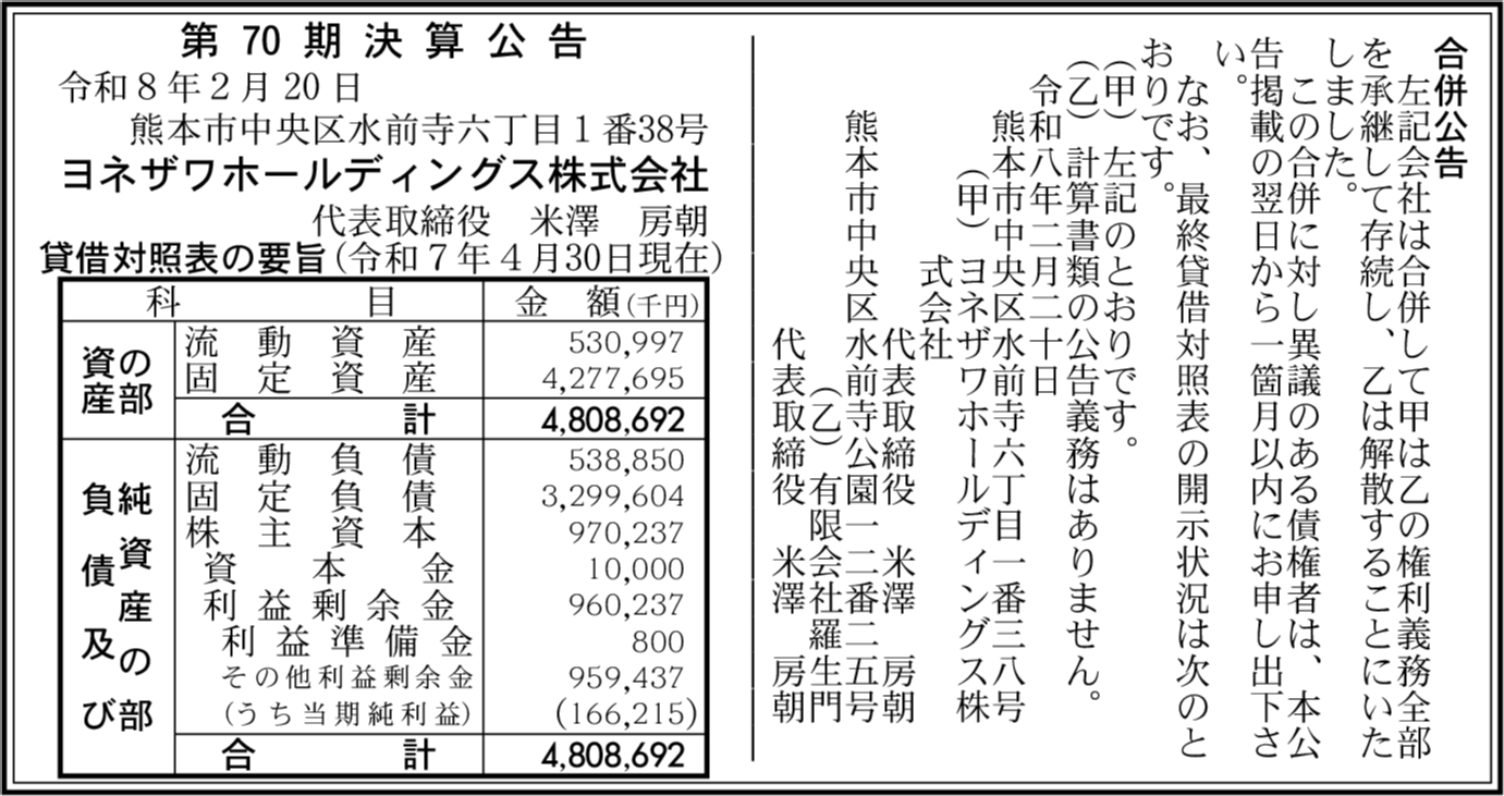 株式会社ヨネザワ 熊本市中央区 【2025年3月期】 |