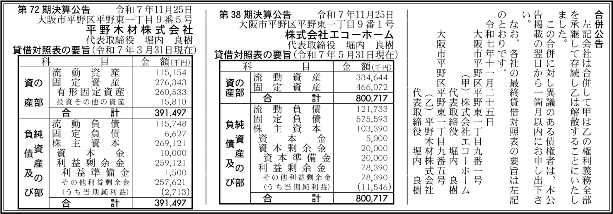 平野木材株式会社 大阪市平野区 【2025年3月期】 |