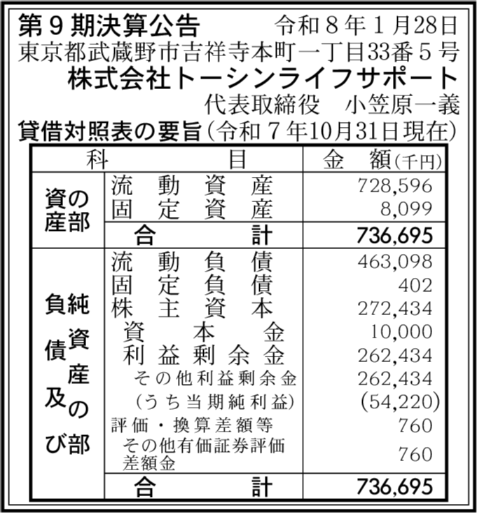 | 会社名 | 株式会社トーシンライフサポート |