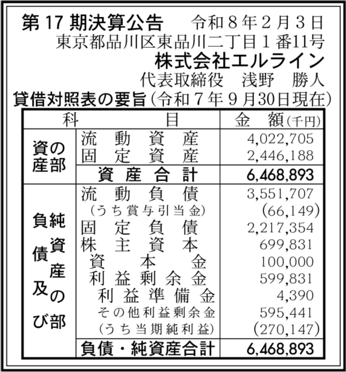 | 会社名 | 株式会社エルライン |