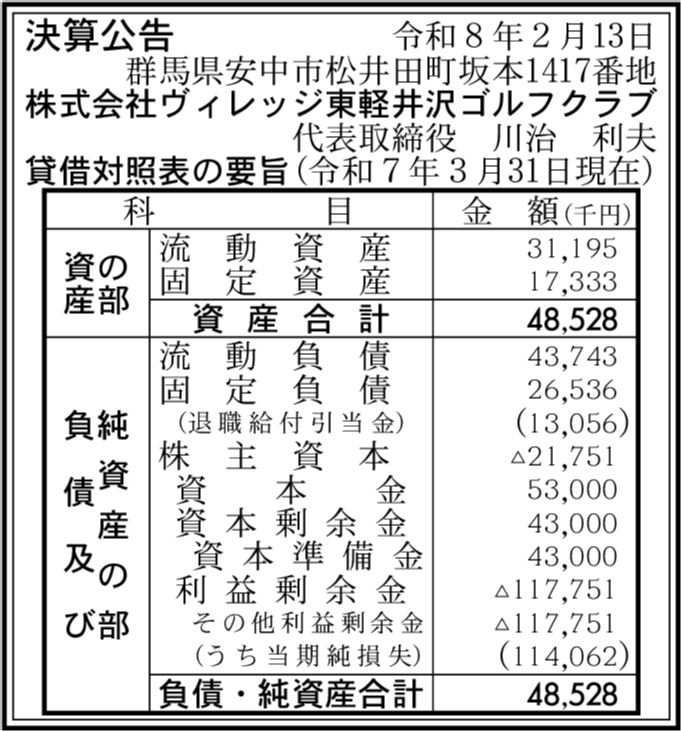 | 会社名 | 株式会社ヴィレッジ東軽井沢ゴルフクラブ |