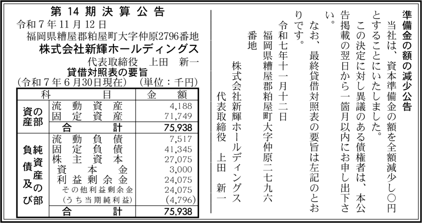 | 会社名 | 株式会社新輝ホールディングス |