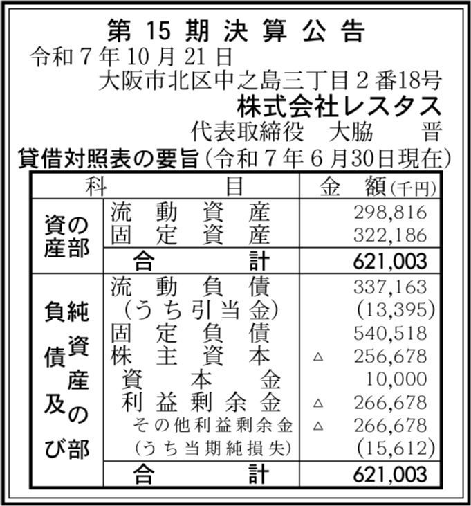 株式会社Reseed 大阪市北区 【2025年6月期】 |
