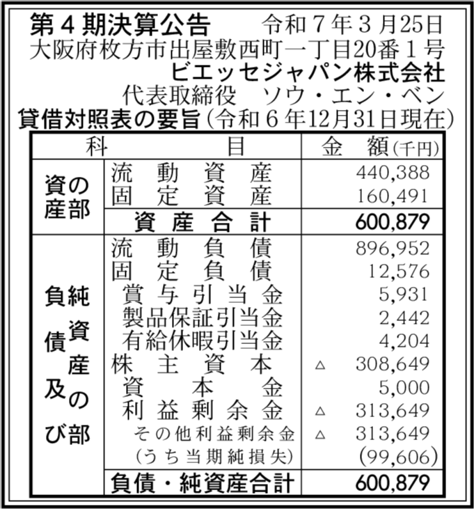 会社名 | ビエッセジャパン株式会社 |
