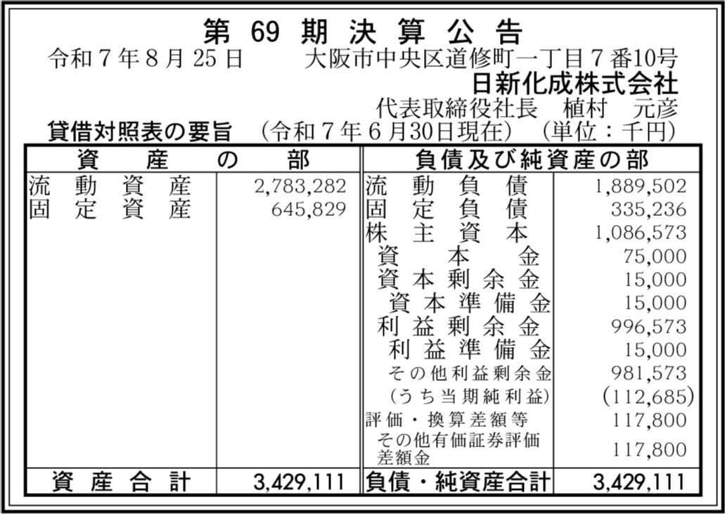 ニッシンキカイサービス株式会社 大阪市中央区 【2025年3月期】 |