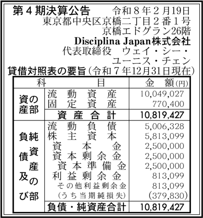 | 会社名 | Disciplina Japan株式会社 |