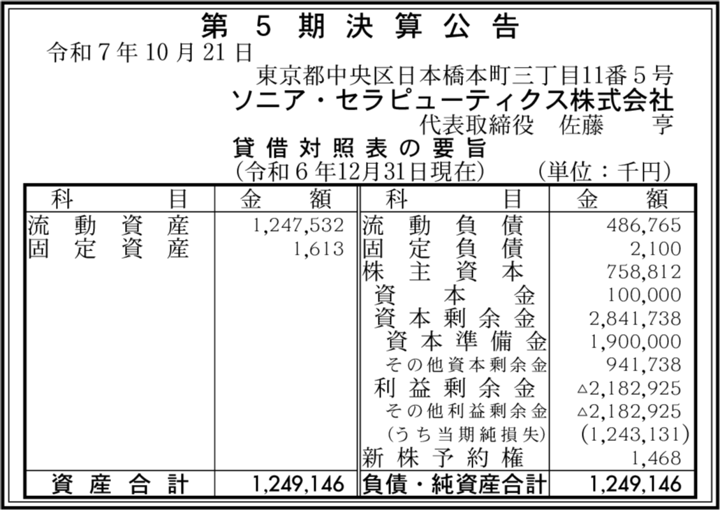 | 会社名 | ソニア・セラピューティクス株式会社 |