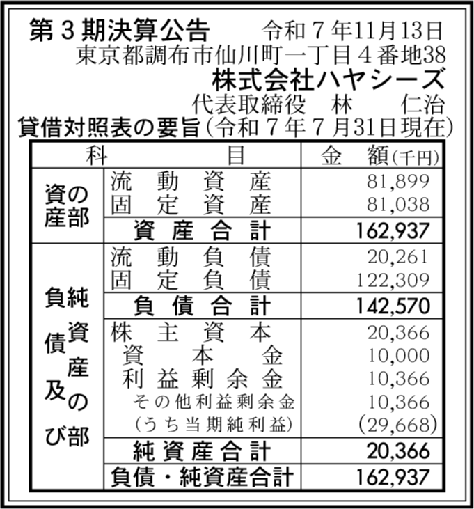 ザ・フィッシュファクトリー・ジャパン株式会社 東京都調布市 【2025年3月期】 |